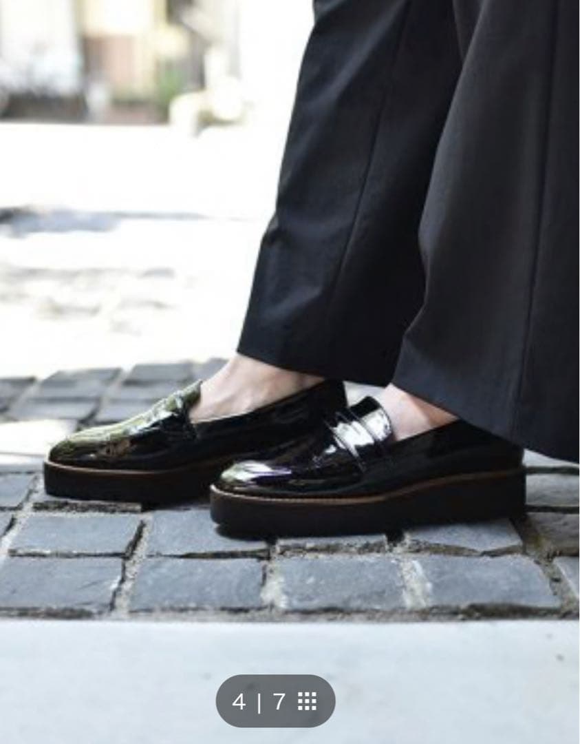 GUCCIのホースビットローファー。クラシックなアッパーに、PRADA SPORTを彷彿とさせるテック系の分厚いソールを組み合わせた、いま人気の“ハイブリッドローファー”です。レザーの艶と、ボリュームのあるラバーソールのコントラストが非常にモードで、OUR’s 深水光太さん系のスタイリングや、Y2K〜アーカイブ系の靴選びとも相性抜群。赤レザーのライニングは90s〜00sのGUCCIならではで、現行にない雰囲気と色気があります。ソールの形状はミュウミュウの厚底ローファーや、プラダのテックシューズの流れが好きな方にも刺さるシルエット。サイズ37(約23.5cm)重厚感はありつつも履き心地は軽く、普段のローファーでは出せない立体感が魅力です。カラー···ブラック系汚れ・破れ・臭いなど···なし必ずプロご確認ください出品中商品一覧はこちら→ #keitaのshopまとめ買いセット割引もできますその他、ビンテージ古着、80s.90s.00sレギュラー古着、アウトドア物、ドメブラ、ハイブランド、スニーカー、革靴、おもちゃ、ゲームなど幅広く出品中です。あくまでもリユース品の為、多少の使用感、汚れ、小傷、ほつれはあるものとご理解いただける方のご購入をお待ちしております。※状態判断は個人差があります。神経質な方はご購入をお控えくださいませ。※素人検品の為、検品漏れがあるかもしれませんが、考慮した価格設定をしております。ご了承お願い致します。。G.H.BASS WEEJUNS 24.5 ローファー ブラック。美品 Dr. Martens ドクターマーチン ビット ローファー UK5 24。REGAL リーガル ウィングチップ タッセルローファー JE03 革靴 23㎝。repetto 限定品 エナメル オックスフォード 37。y*️様 Mazellブラック ローファー。【店頭展示品】MEPHISTO LADY グラファイト EU3 22.5cm。SIIILON×HARUTA ブラックリボン付き厚底シューズ。ドクターマーチン Dr.マーチン メリージェーン 8065 punk mods。【専用商品】Dr.Martens ローファー UK4 23cm。美品 staccato ブラックレザー ローファー パヌーコンビローファー。未使用級 HERMES エルメス 革靴 ケリー ダービー ファースト 36 黒。【美品】リーガル フラットローファーBL 23.5レビュー